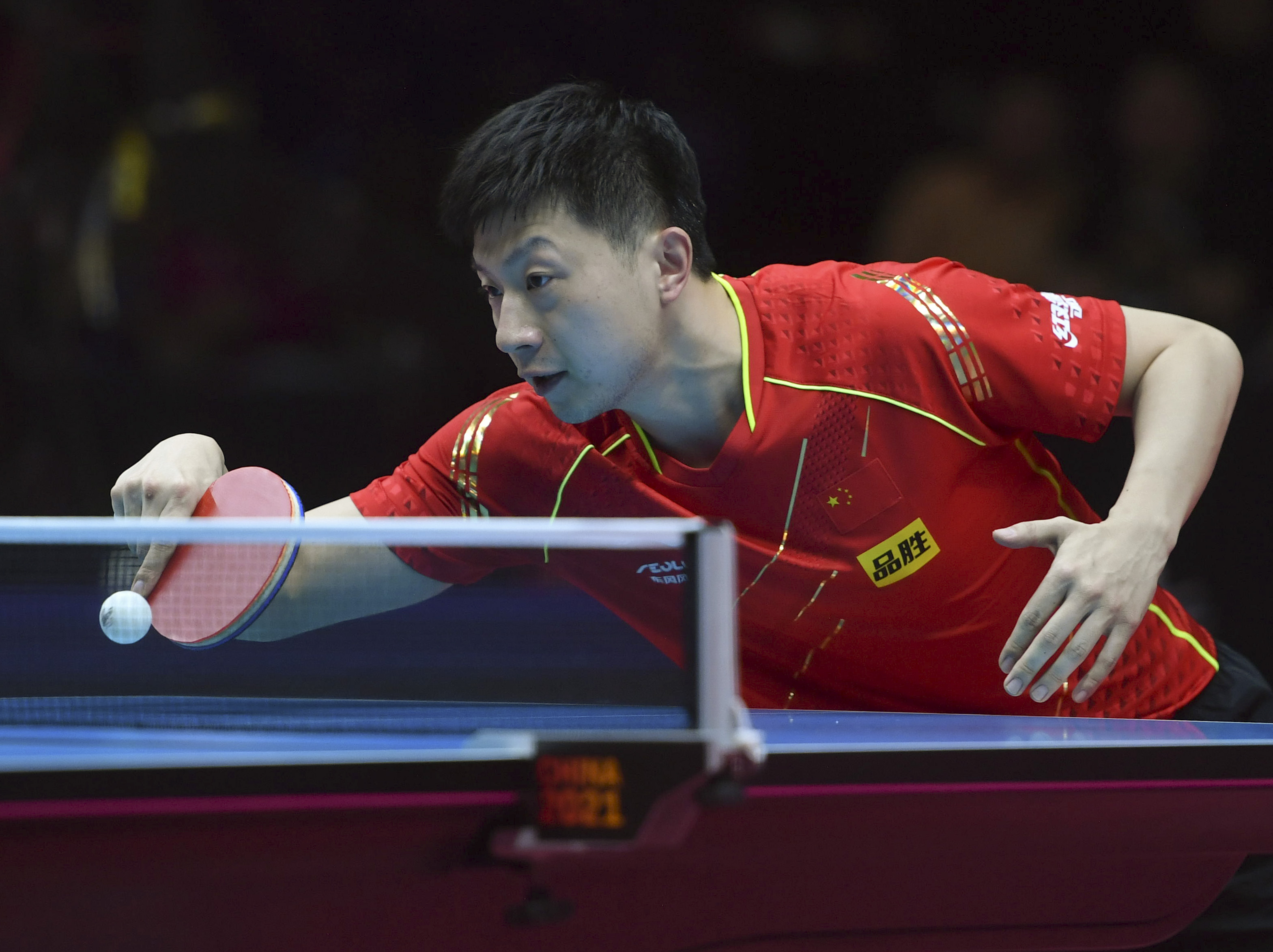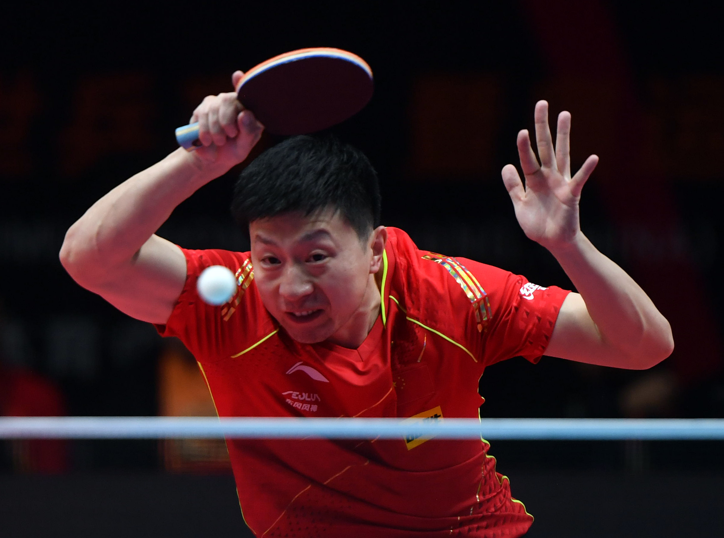5月5日,马龙在比赛中回球。新华社记者李嘉南摄