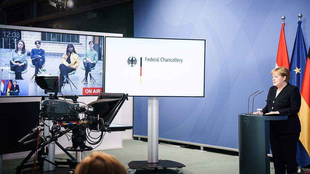△默克尔5日通过视频连线方式出席荷兰解放日庆祝活动 图片来源:联邦政府网站