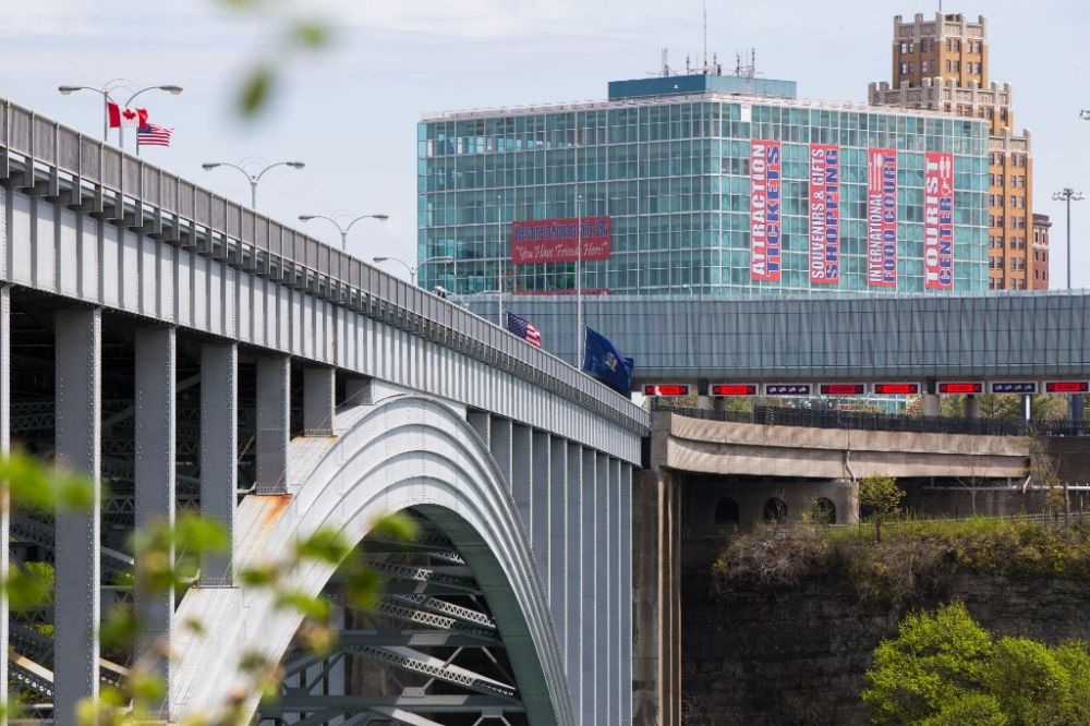 这是2020年5月19日在位于加拿大安大略省尼亚加拉瀑布的彩虹桥旁拍摄的加美边境地带。(新华社发,邹峥摄)