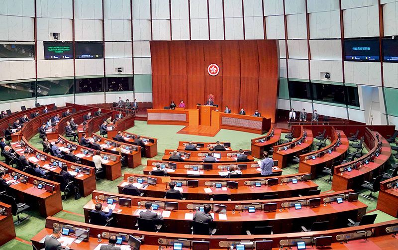香港《2021年完善选举制度(综合修订)条例草案》提交特区立法会首读及二读。这是香港特区立法会会议现场(4月14日摄) 吕小炜摄/本刊