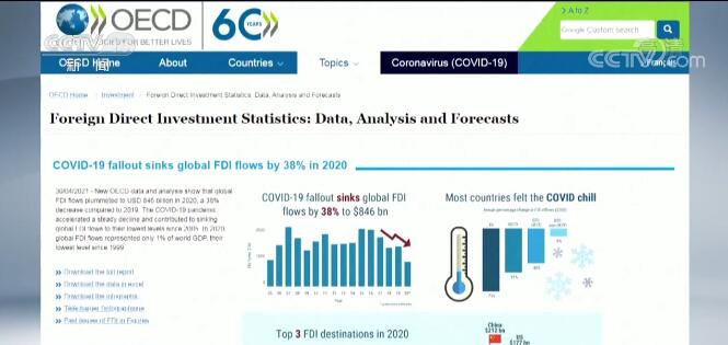 央视网消息:经济合作与发展组织近日发布报告称,2020年中国超过美国,成为全球外国直接投资第一大目的地。