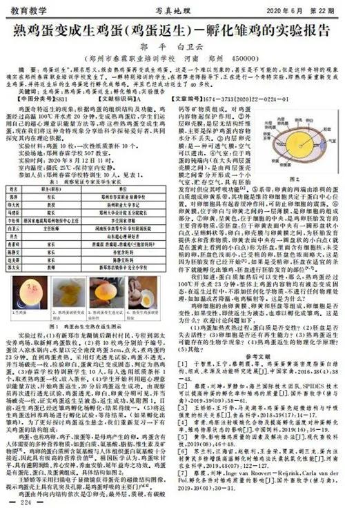 已经煮熟的鸡蛋还能“返生”?甚至可以孵出小鸡?近日,一篇题为《熟鸡蛋变成生鸡蛋(鸡蛋返生)-孵化雏鸡的实验报告》的论文引发公众关注。该论文收录在吉林省一家《写真地理》期刊,第一作者为河南郑州市春霖职业培训学校校长郭萍。据公开报道信息显示,郭校长还有物体穿瓶越壁、熟绿豆返生发芽等相关著作。该文章声称,在该校导师郭某的指导下,学生利用“超心理意识能量方法”,使煮熟的鸡蛋变成生鸡蛋并孵化小鸡。目前,吉林省新闻出版局已成立工作组,进驻杂志出版单位进行深入调查。