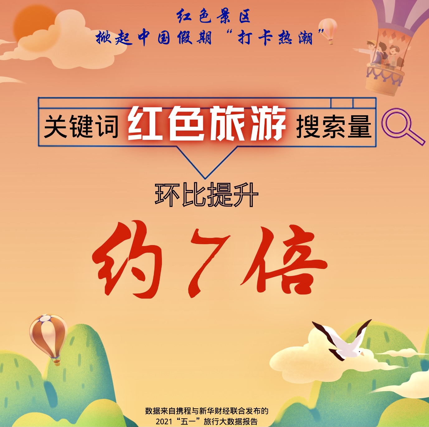 携程与新华财经5日联合发布的2021“五一”旅行大数据报告显示,“五一”假期国内旅游市场强势复苏,“红色旅游”关键词在“五一”期间搜索量环比提升约7倍;对比2019年同期,携程红色旅游景区订单量实现增长约375%。