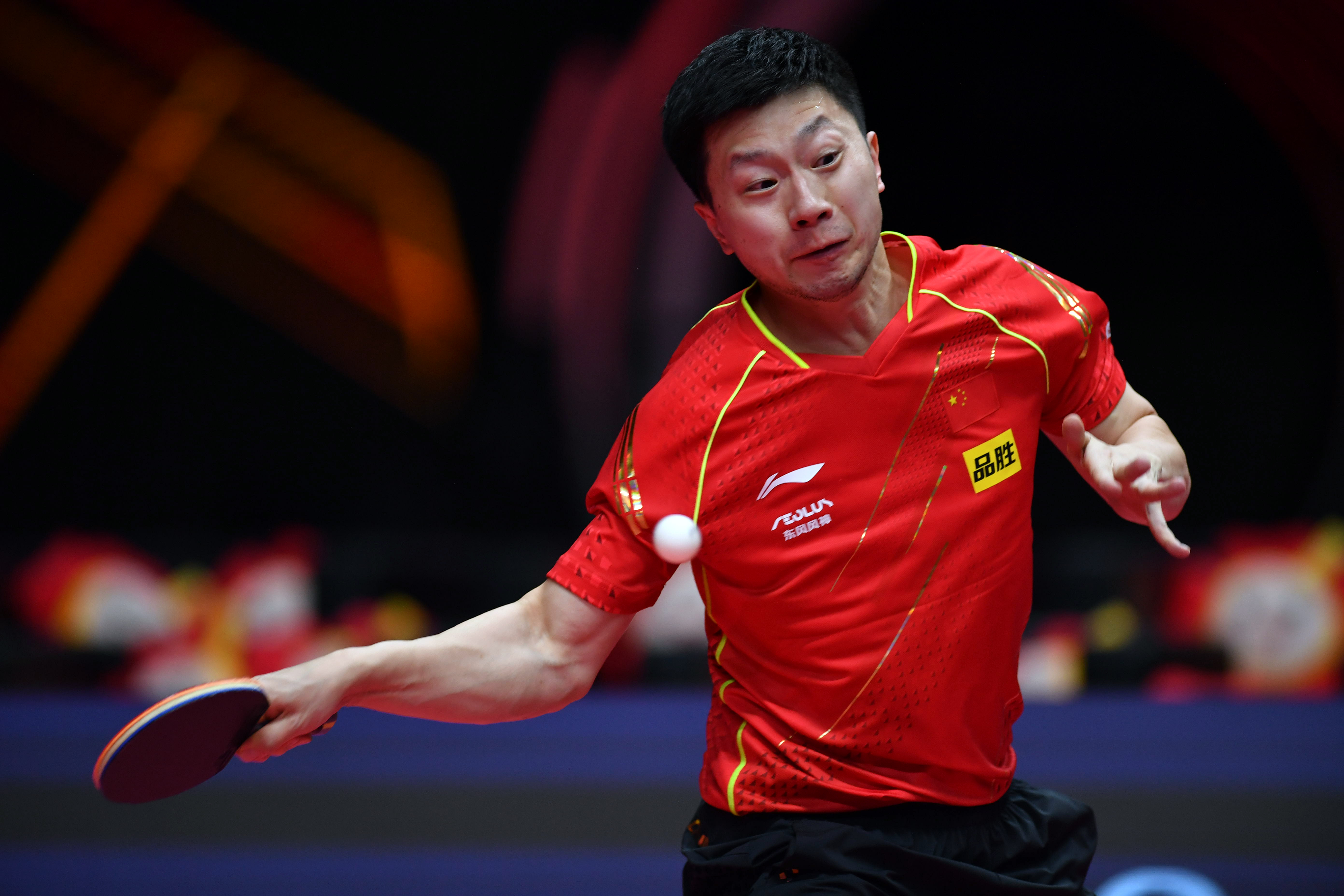 5月6日,马龙在比赛中回球。新华社记者 李嘉南 摄