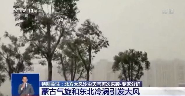 造成这种大风天气的原因,从地面来看,是蒙古气旋,从高空来看,就是东北冷涡。在大风的影响下,蒙古国包括我国内蒙中部地区就会有大量的沙尘携带,影响到整个华北,包括西北地区东部、东北地区,大部分面积都受到了沙尘影响。