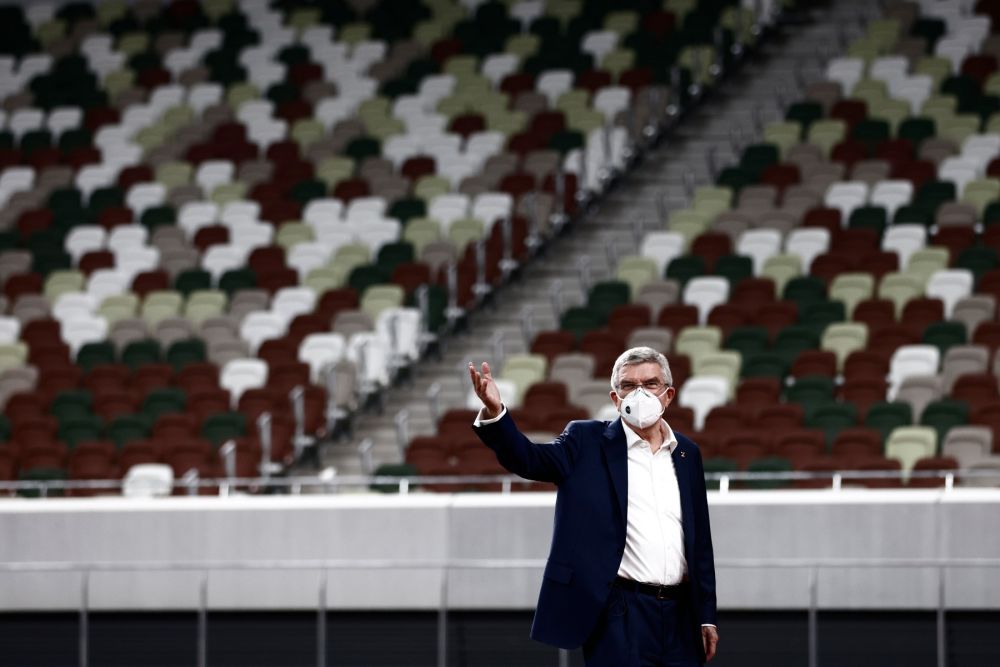2020年11月17日,国际奥委会主席巴赫在日本东京参观作为奥林匹克体育场的新国立竞技场。(新华社/POOL/贝赫鲁兹·迈赫里)