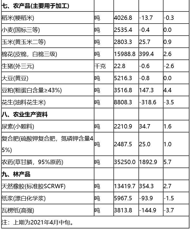 2021年4月下旬流通领域重要生产资料市场价格变动情况