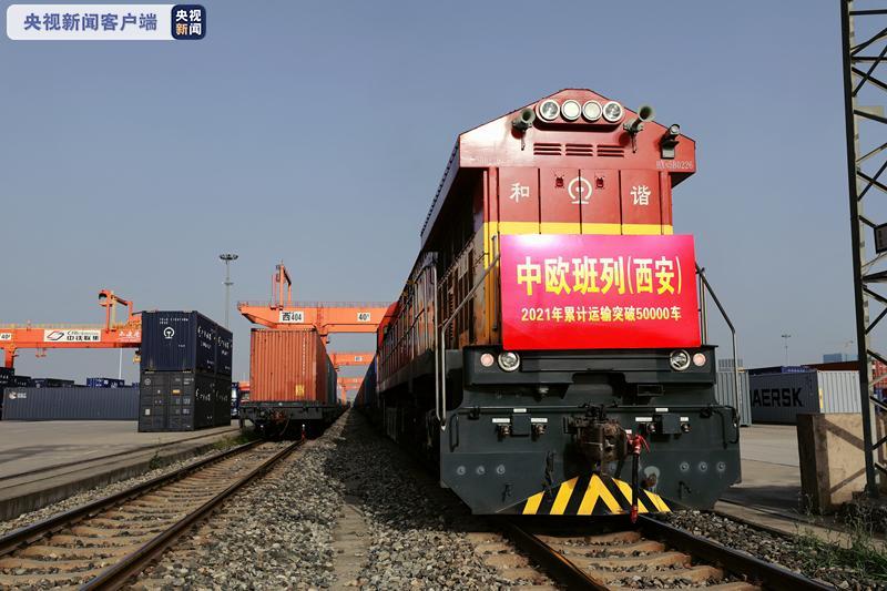 5月6日,满载着电水壶、光纤调制解调器、儿童自行车等50车货品的X8155次中欧班列(西安),从中国铁路西安局集团有限公司西安国际港站驶出开往阿拉山口口岸,标志着2021年中欧班列(西安)运输车数突破5万车。
