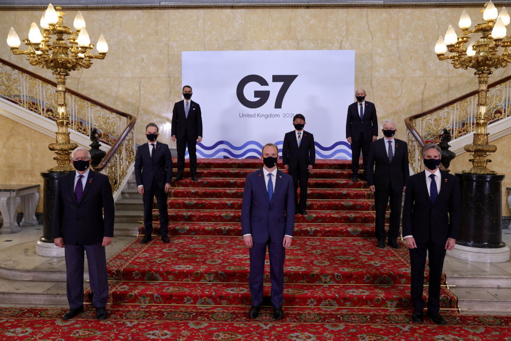 5月4日,七国集团外长会与会代表在英国伦敦兰卡斯特宫拍摄合影。新华社发(英国首相府供图)
