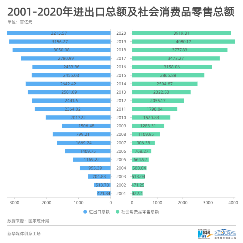 《中华人民共和国国民经济和社会发展第十四个五年规划和2035年远景目标纲要(草案)》提出:坚持实施更大范围、更宽领域、更深层次对外开放,依托我国超大规模市场优势,促进国际合作,实现互利共赢。近年来,我国对外开放的大门越开越大,2020年我国进出口总额增长至321557亿元,达到二十年前的7.6倍,开放与包容成为时代的主流。