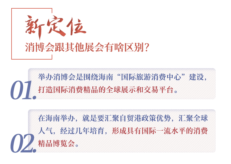 本届消博会围绕海南 "国际旅游消费中心"建设,汇聚海南自贸港政策优势,打造国际消费精品的全球展示和交易平台。“消博会可实现全球买家、卖家的直接交易,引进国外优质消费品,弥补国内高端供给不足,是畅通国内大循环的载体;联通两个市场,推动商品、服务和要素顺畅流动,也是促进双循环的载体”,对于举办消博会的意义,商务部副部长王炳南这样阐释。