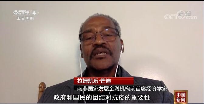 南非国家发展金融机构前首席经济学家 拉姆凯乐.芒迪:中国让我们真正看到了政府和国民的团结对抗疫的重要性。中国国内疫情得到控制,这才会有此次火热的“五一”假日经济。相关举措挽救了人们的生命,同时也促使中国经济迅速复苏。