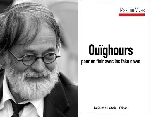拼版图片:左图为法国作家马克西姆·维瓦斯,右图为《维吾尔族假新闻的终结》一书法文版封面。受访者供图