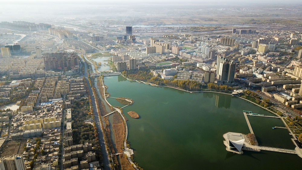 这是2017年11月8日航拍的新疆喀什市东湖公园周边的景色。新华社记者胡虎虎摄