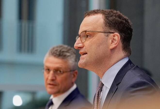 △德国卫生部部长斯潘(右)和罗伯特·科赫研究所所长威勒召开新闻发布会。(图片来源:德国媒体)