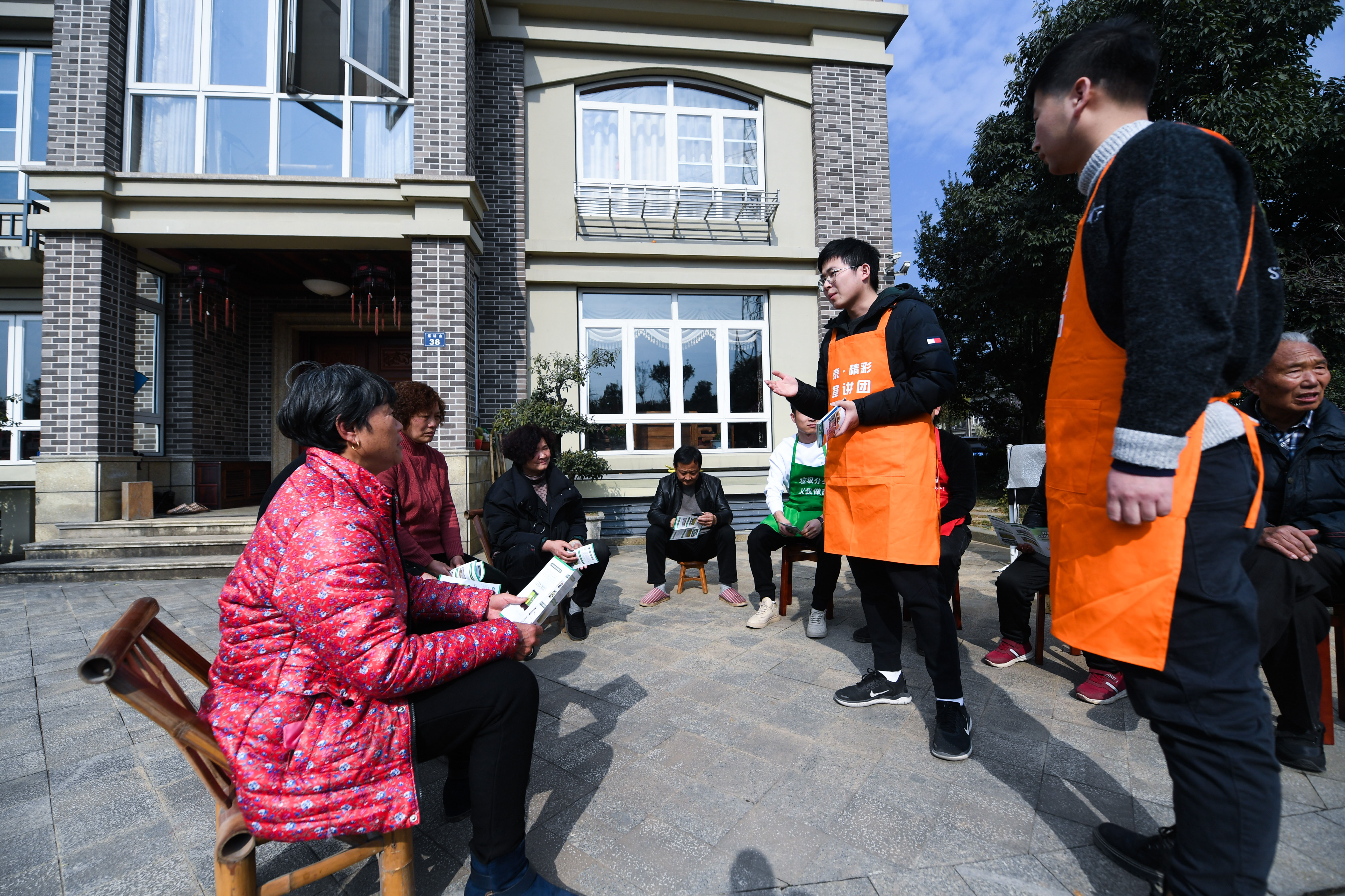 浙江杭州余杭区中泰街道“围裙宣讲团”给村民宣讲垃圾分类、疫情防控知识。 新华社记者徐昱 摄