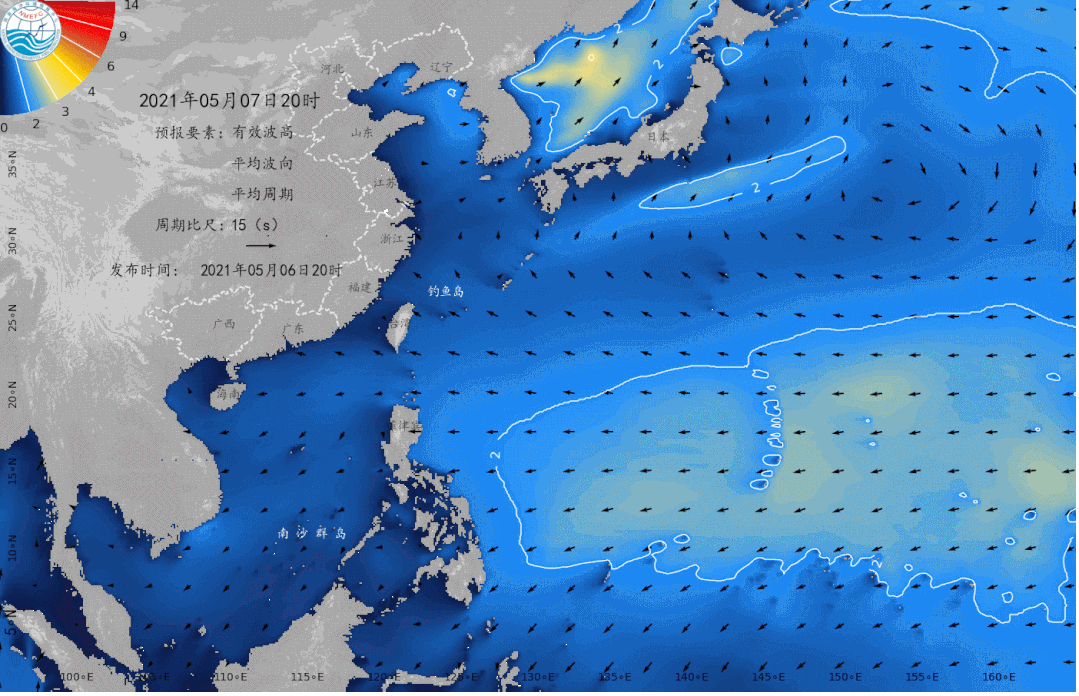 (2)受出海气旋影响,12日,东海将出现2到2.5米的中浪到大浪区。
