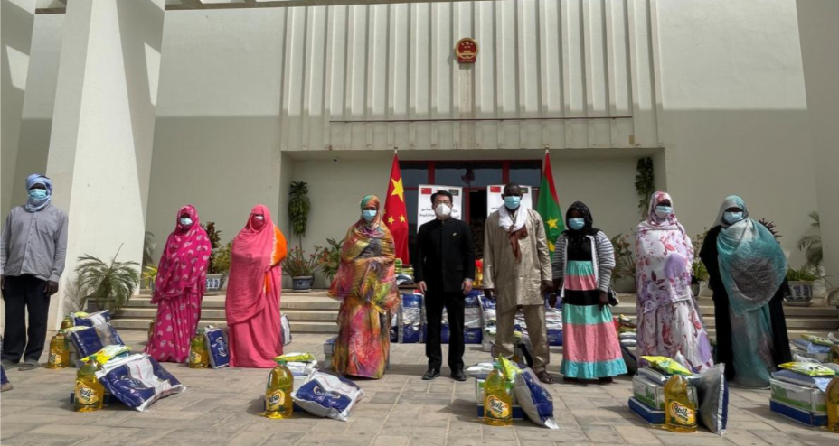 5月6日,中国驻毛里塔尼亚使馆与“丝绸之路”中毛文化交流中心合作举办斋月捐赠活动,向当地300户贫困家庭发放糖、油、面、奶、椰枣等食品。