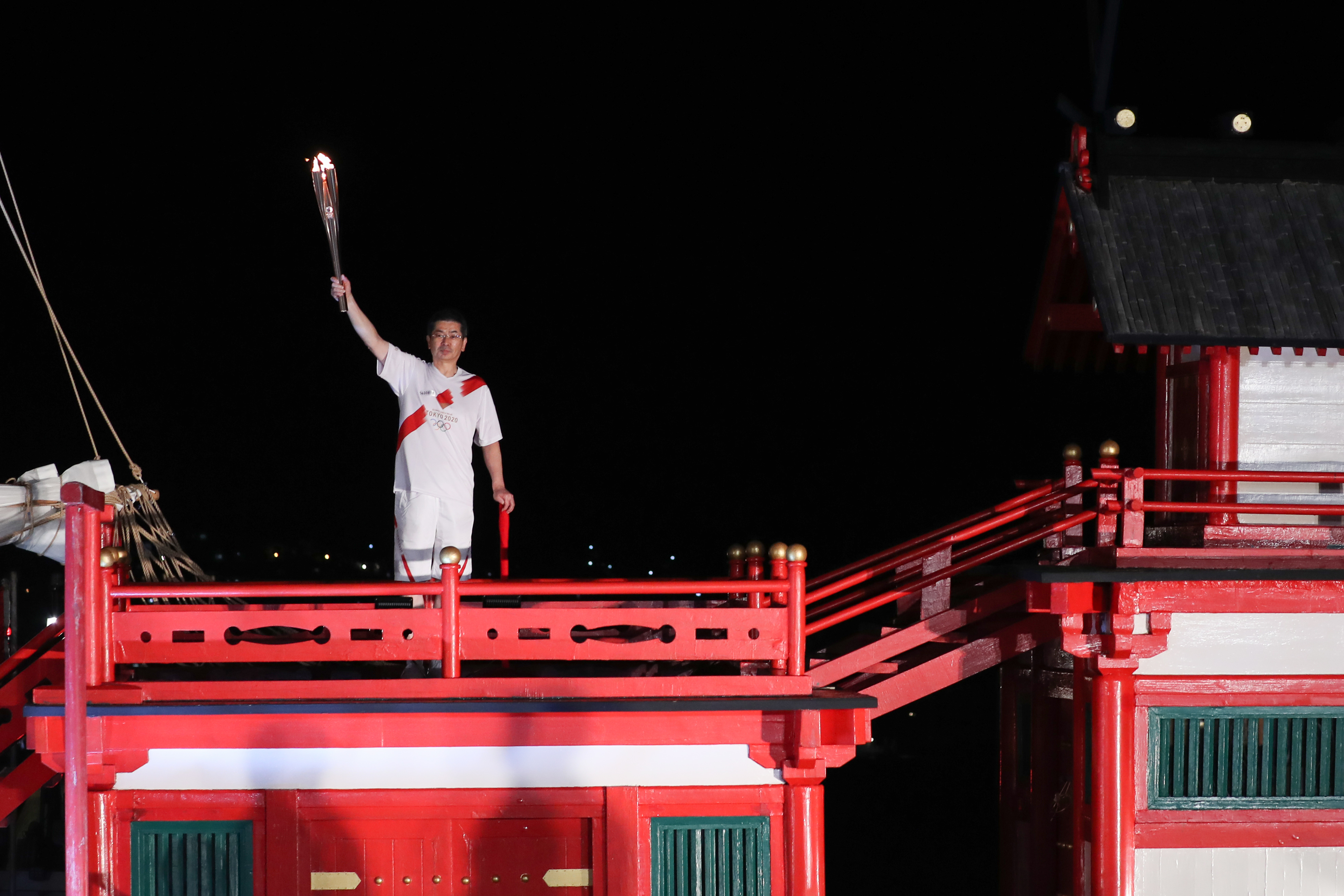 当天晚上8点,火炬手小林充佳在手中的火炬点燃后说:“点燃火炬的这一瞬间,我非常感动、兴奋。看着眼前的遣唐使船,我不禁想起,以前的遣唐使怀揣梦想与希望,从这里出发奔向广阔的世界。我也想如他们一样,带着梦想与希望不断前行。”
