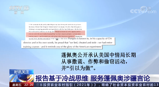 奥贝里认为“美加报告”完全基于冷战思维,为服务美国内利益集团对华强硬立场、配合前国务卿蓬佩奥所谓的“种族灭绝”言论仓促出台,竭力系统性地“妖魔化”中国。而众所周知,蓬佩奥是极端基督教保守主义者,一贯视“对华强硬”为政治正确,他本人公开承认美国中情局长期从事撒谎、作弊和偷窃活动,并“引以为傲”。