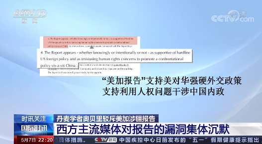 奥贝里发现,“美加报告”明显支持美对华强硬外交政策,支持利用人权问题干涉中国内政,同新线战略与政策研究所标榜的“增进沟通,促进和平”的中立学术机构定位严重不符。西方主流媒体对“美加报告”存在的严重漏洞集体沉默“睁眼瞎”,放弃其标榜的新闻报道原则,屡屡在未经核实的情况下转载炒作。