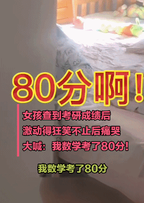 考研成绩公布,山东济南的一个女孩激动得喜极而泣!视频中的她,查到自己成绩后,激动得手舞足蹈“80分!我数1考了80分!”说着说着,自己趴到床上痛哭不止。