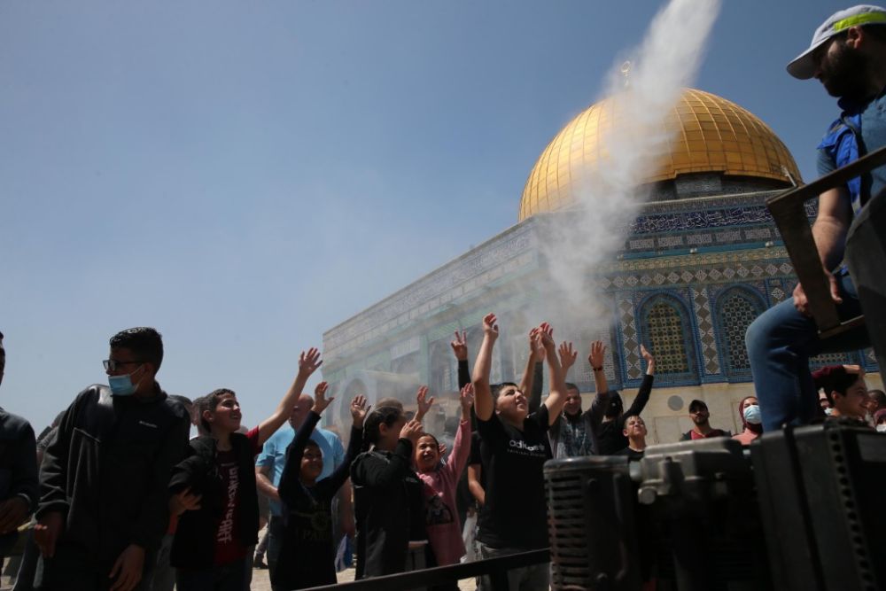 一些巴勒斯坦人7日聚集在耶路撒冷老城圣殿山(穆斯林称“尊贵禁地”)阿克萨清真寺附近。美联社报道,巴勒斯坦人向以色列警察投掷石块、瓶子和爆竹,以色列警察对巴勒斯坦人群使用橡胶弹和震爆弹。
