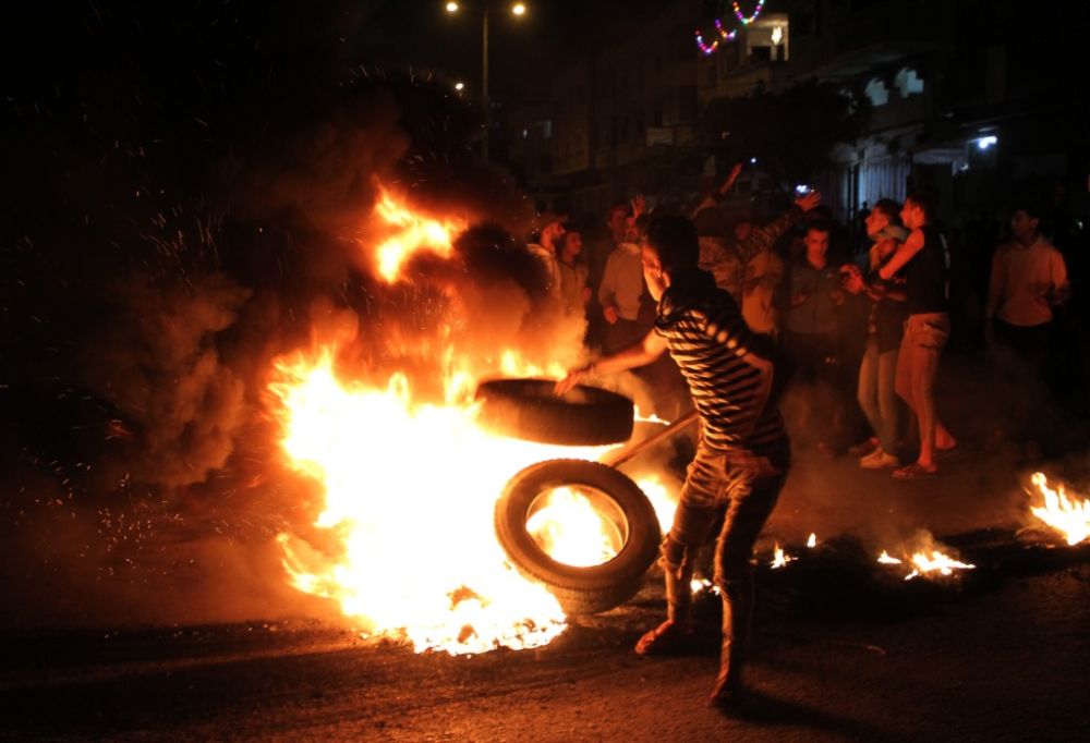 4月24日,人们在加沙城的抗议活动中点燃轮胎。(新华社发,里泽克·阿卜杜勒·贾瓦德摄)
