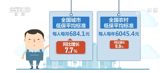 央视网消息:记者今天(5月8日)从民政部举行的新闻发布会上了解到,今年一季度,全国城乡低保标准同比分别增长7.7%和9.9%。