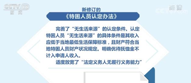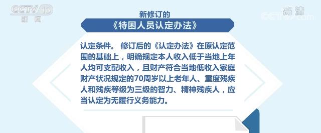 央视网消息:截至2020年底,全国共有特困人员477.6万人,为切实兜住兜牢基本民生保障底线,日前民政部重新修订了《特困人员认定办法》,适当放宽特困人员认定条件。