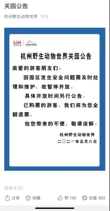 俗话说,不是不报,时候未到。这句话,杭州野生动物世界该深刻反思,引以为戒。