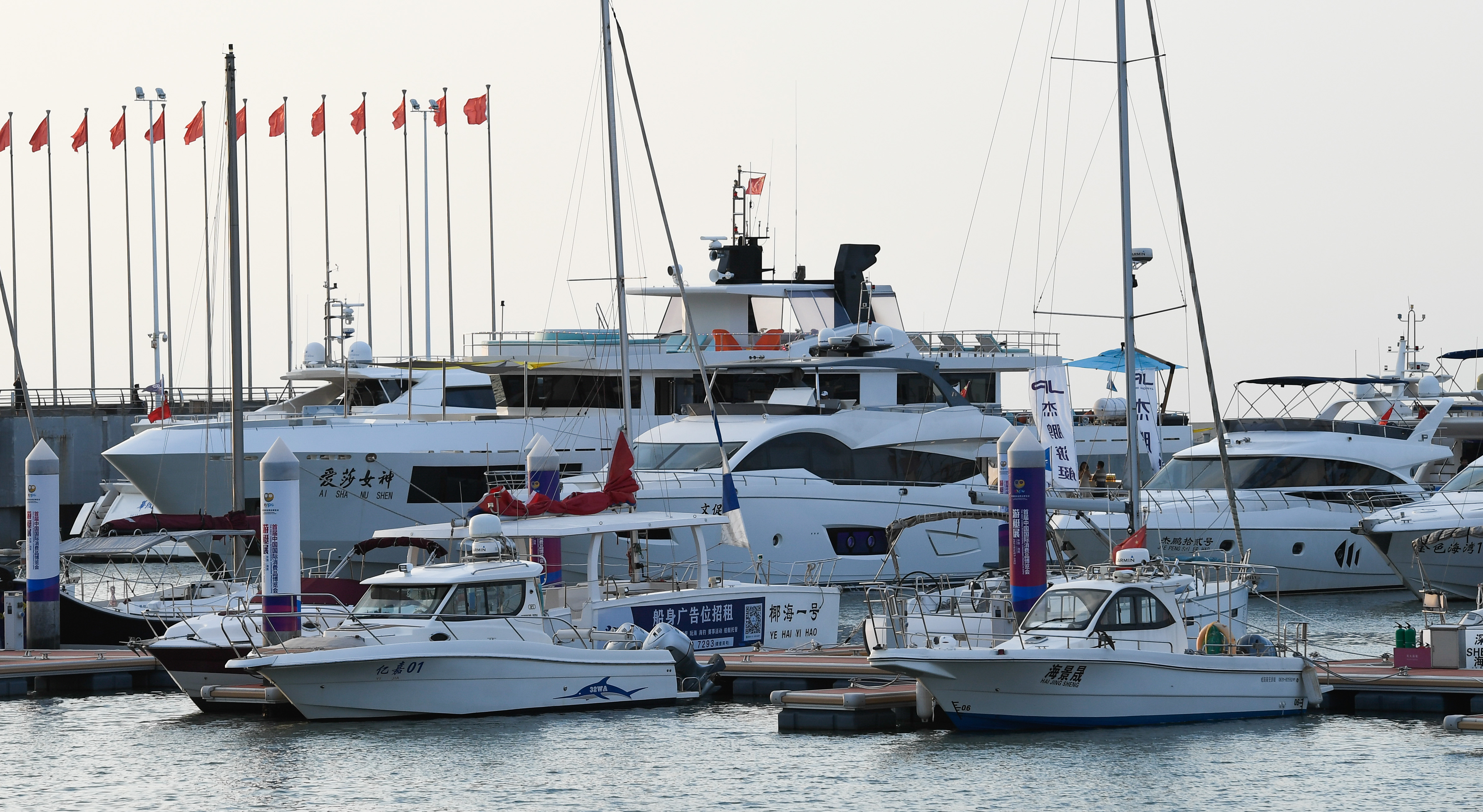 参展游艇停泊在水上展区。新华社记者杨冠宇摄