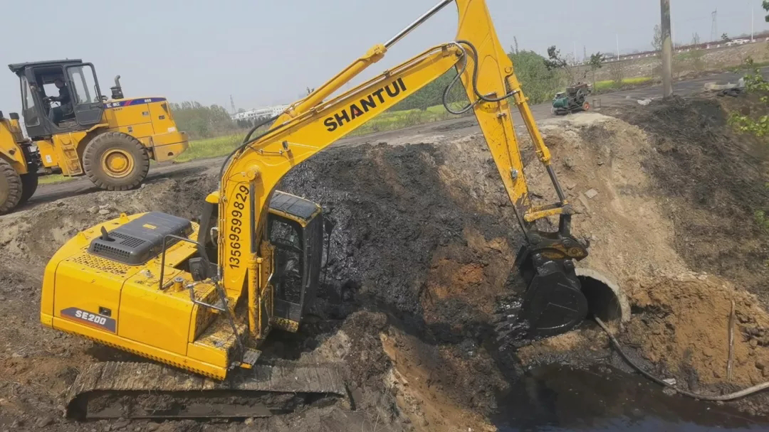 督察人员到达现场时,大型施工机械正在天瑞焦化厂区外排水沟渠紧急清理漂着油花的污水和底泥,场面一度混乱不堪,焦油味十分刺鼻。