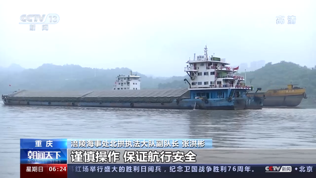 7日下午4点,在涪陵李渡长江大桥附近水域,海事执法人员驾驶巡逻艇沿线巡航,对过往船舶喊话提醒。为确保航行安全,在库区水位低于160米时,海事部门对该航段的船舶航路实施分道航行规则,并根据当地水位情况划定了89个上行横驶区和13个控制河段,以及40个严禁会船水域。
