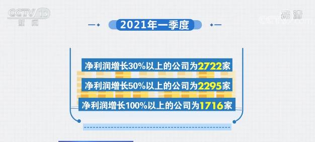 具体来看,2021年一季度,净利润增长30%以上的公司为2722家,净利润增长50%以上公司2295家,净利润增长100%以上公司1716家。