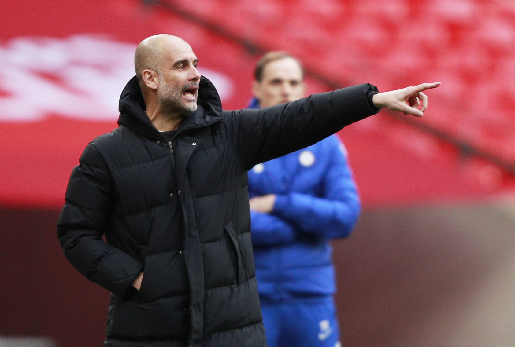 资料图:曼城队主帅瓜迪奥拉在场边观战。