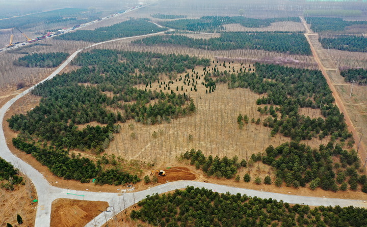 2021年3月19日拍摄的雄安新区“千年秀林”(无人机照片)。新华社记者 牟宇 摄