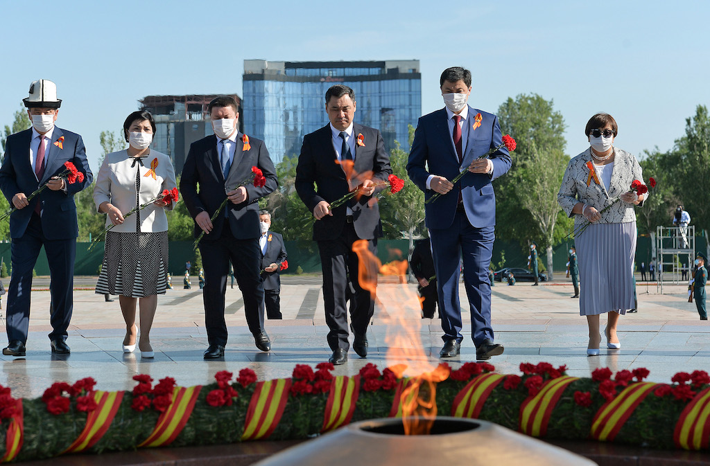 扎帕罗夫还向吉全国人民祝贺伟大卫国战争胜利。他指出,伟大卫国战争期间,36万吉尔吉斯斯坦人奔赴战场,超过10万人牺牲。15万人获得嘉奖,其中73人荣获苏联英雄称号,22人获得荣誉勋章。战争期间,吉尔吉斯斯坦向前线提供弹药、食品、服装以及各种国防工业所需战略原材料,为数十万从前线撤离的官兵和民众提供住所和照料,其中很多人最后选择留在这里。