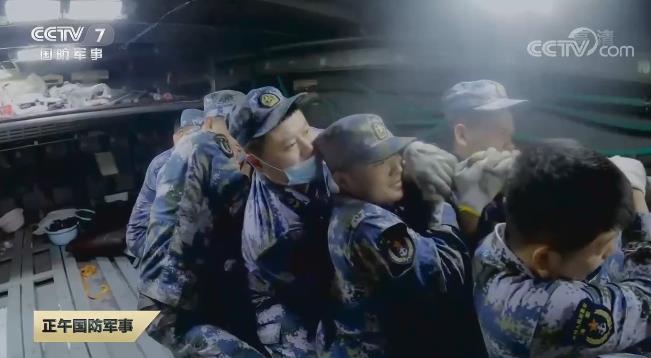 总台央视记者:我现在来到这个舱室,就是潜艇上存放我们蓄电池的舱室,这个电池每一块都是几百公斤,所以需要战士齐心协力才能完成它的安装工作。一会儿整个舱室,都会被像这样的电池填满。这个舱室是有什么特点?空间特别的狭小,大家看我现在站直了之后,离顶上的天花板也就是一两公分的一个距离。