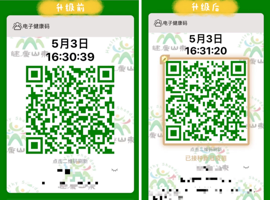近日,山东、上海的健康码“金色皮肤”已经陆续安排上了,绿码周边“镀”上金色边框,左上角还有“针剂”和“盾牌”加持,表示持有人已受新冠疫苗保护。只要接种疫苗就能免费“解锁”新皮肤,引发网友追捧。
