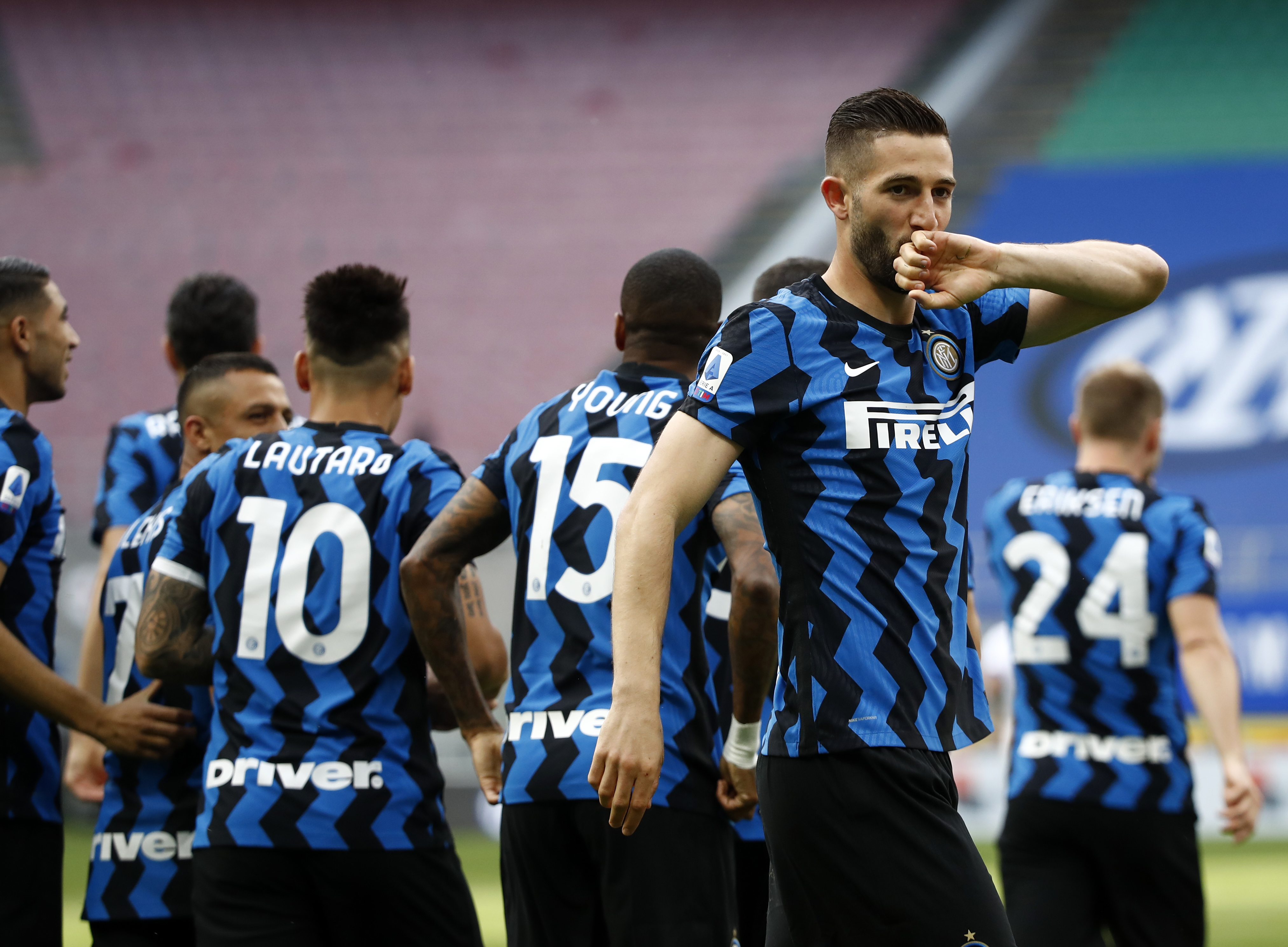 国际米兰队球员加利亚尔迪尼庆祝进球。新华社发