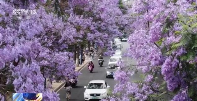 30多年前,蓝花楹从国外引进昆明种植,每到花开时节,昆明的多条道路就变成了紫色长廊。今年,当地对蓝花楹大道进行了整治提升,开设了蓝花楹赏花专列巴士,还推出了文创礼品等。(总台记者 张斌 李劲松 陶世飞)