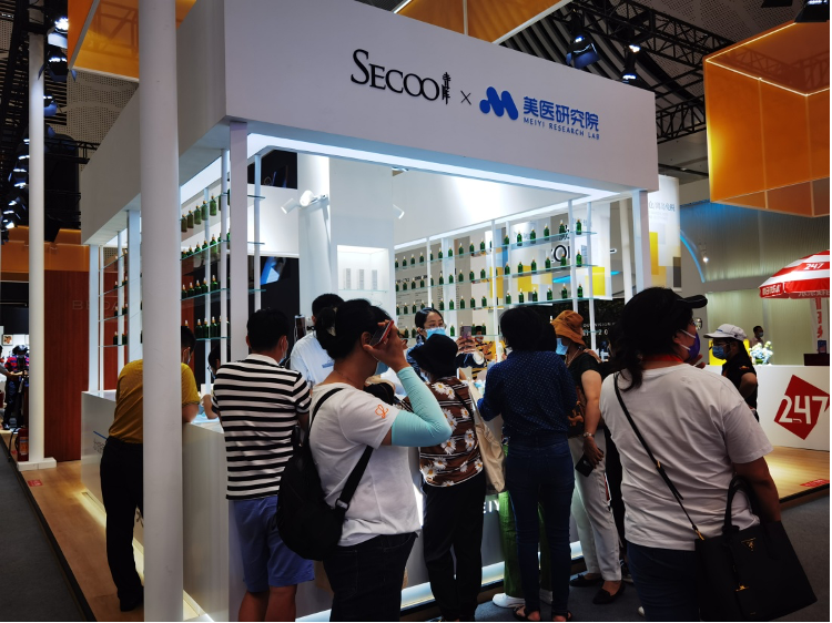 在消博会上,寺库集团展台推出的最新护肤概念产品引来不少人驻足试用。新华社记者 王雪摄