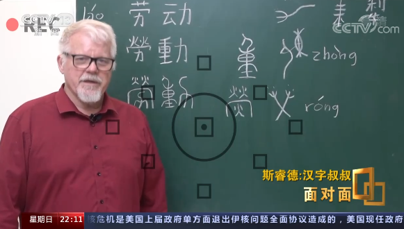 斯睿德:非常高兴,喜欢这个称呼,我从40岁到60岁花了20年的时间研究汉字,花了那么多的钱那么多的精力,大部分人觉得我奇怪,现在终于有人觉得是值得的。