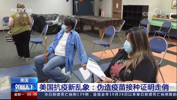 央视记者 刘旭:我现在手里拿着的就是美国的疫苗接种卡,这张卡片上并没有独立的编号,也没有像二维码一样的电子防伪信息,由于出入场所基本由人工来检查,所以这种卡片是非常容易伪造的。