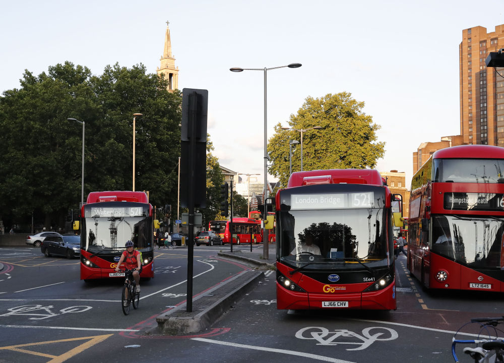 2017年8月15日,在英国伦敦,中国车企比亚迪公司与英国客车制造商亚历山大·丹尼斯有限公司联合设计生产的电动公交车在路上行驶。(新华社记者韩岩摄)
