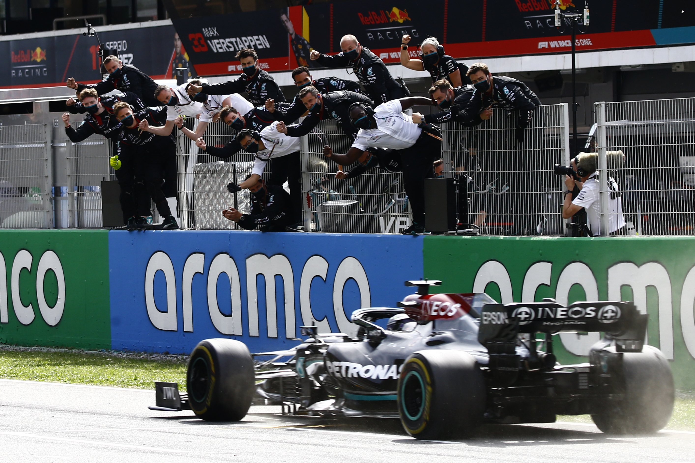 汉密尔顿虽在此前的排位赛中夺得杆位,但在正赛起步阶段却遭第二位发车的维斯塔潘超越。第29圈进站后,汉密尔顿依旧落后于此前已完成进站的维斯塔潘。面对领先的对手,汉密尔顿采取了二次进站的战术,并在出站后持续缩小与维斯塔潘的差距,终于在第60圈成功超越后者,拿下最后的胜利。