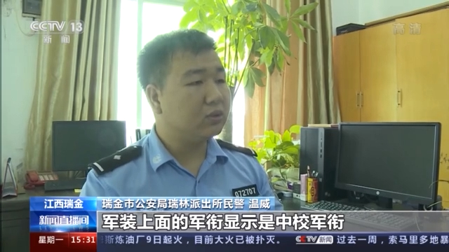 瑞金市公安局瑞林派出所民警 温威:这名男子从口袋拿出军官证给我们之后,我们看了一下,就核查一下,发现这本军官证照片上面,军装上面的军衔显示是中校军衔,但是军官证上面写的是少校军衔。