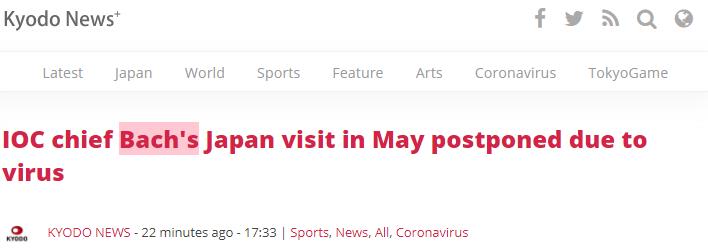 共同社:国际奥委会主席巴赫访问日本行程推迟至6月
