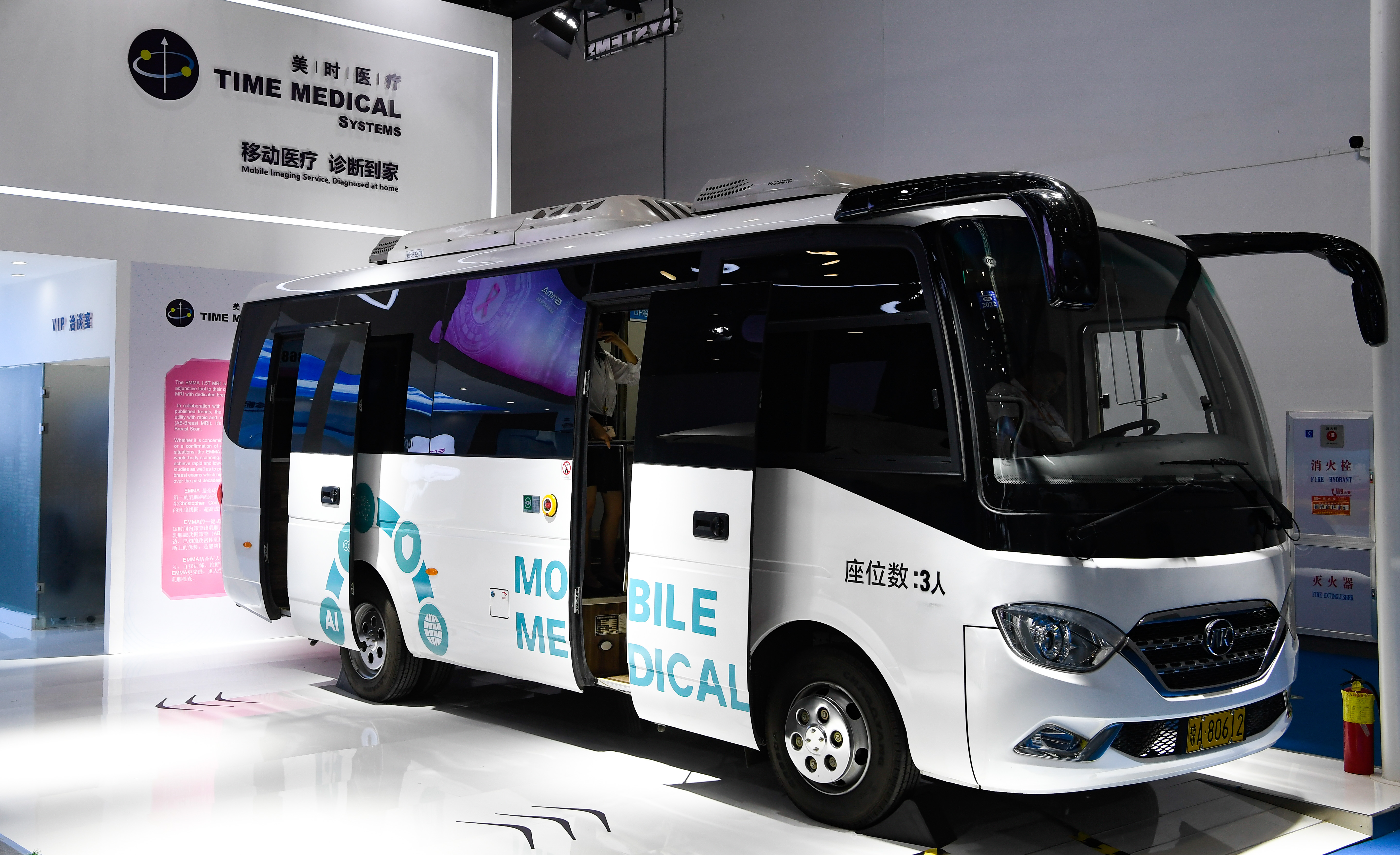 在消博会旅居生活展区拍摄的移动医疗车。新华社记者 杨冠宇 摄
